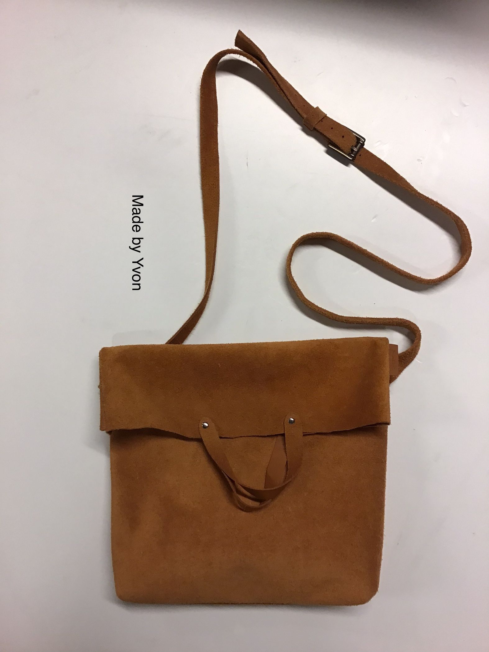 Tas, suède, cognac, 30 x 30 cm.