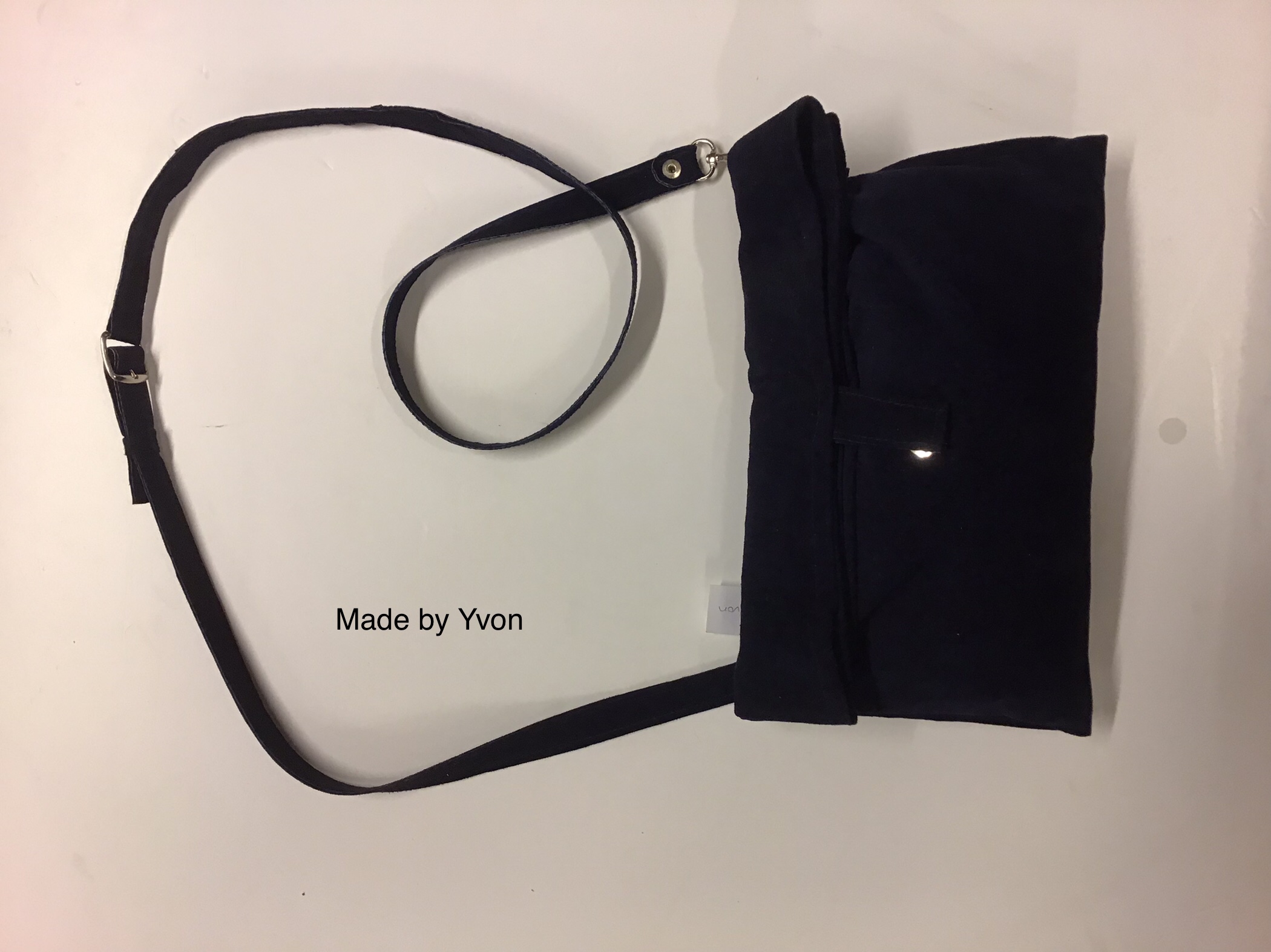 Tas, donker blauw, suède, 18 x 30 cm.